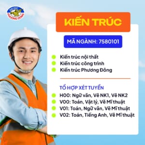 Ngành Kiến trúc gồm Kiến trúc nội thất, Kiến trúc công trình, Kiến trúc Phương Đông
